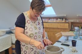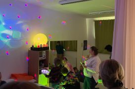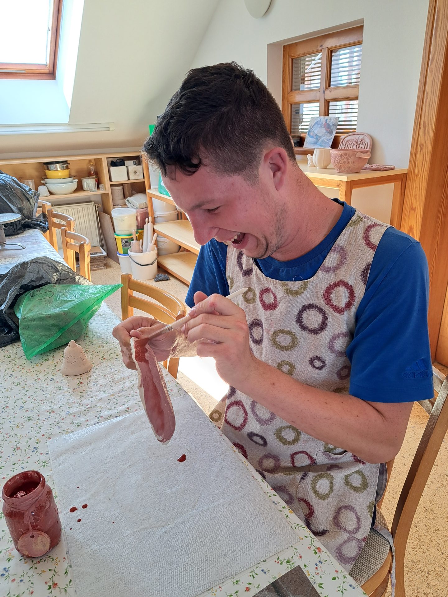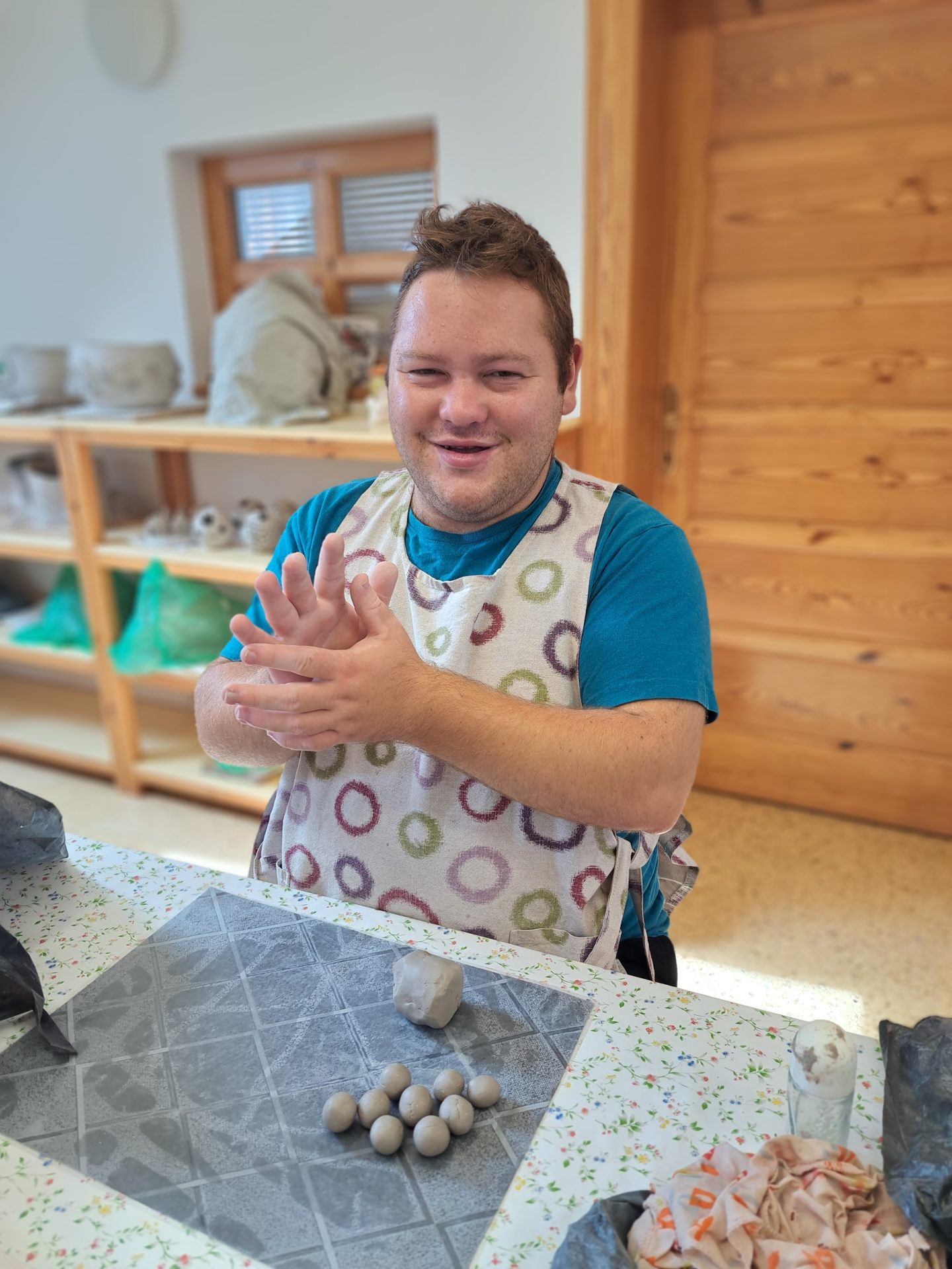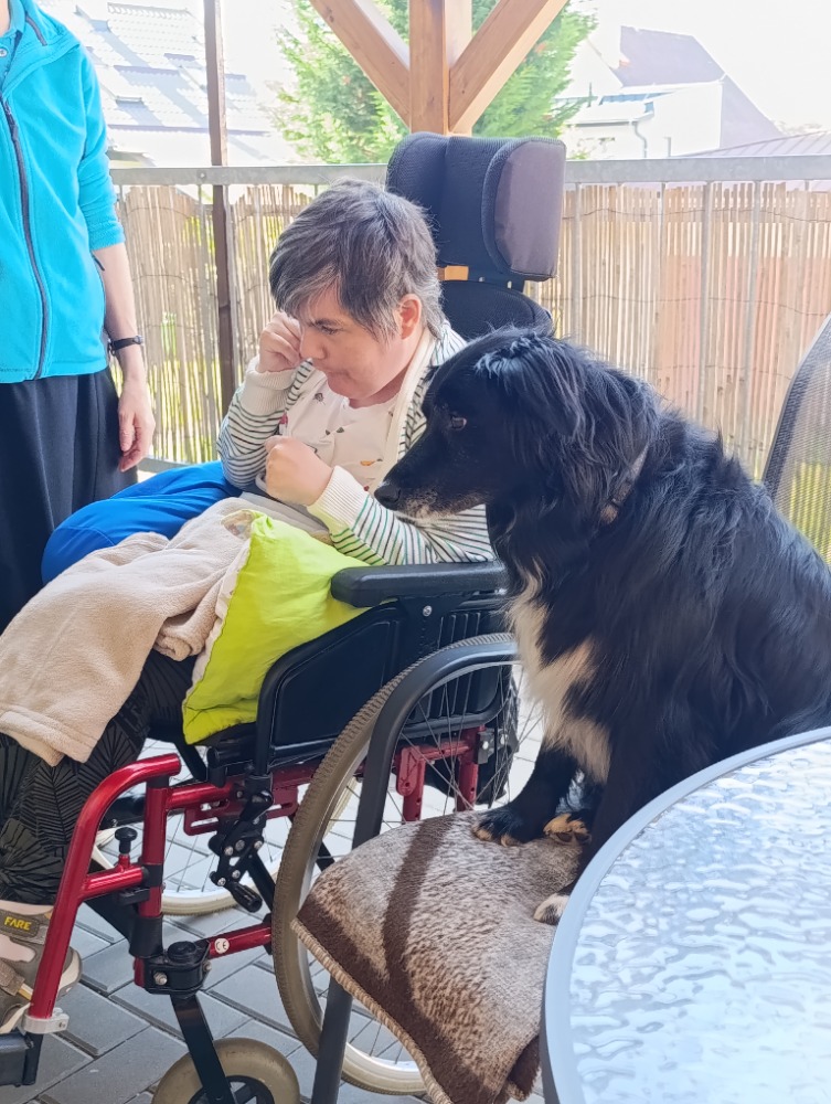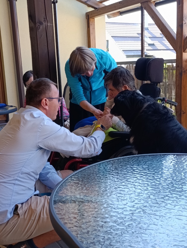 Kromě toho jsme v září chodili na vycházky, pracovali v dílnách a pro naše pracovníky jsme uspořádali třetí školící den z oblasti alternativní a augmentativní komunikace. Velkou radost nám udělala také návštěva otce Sylwestera a canisterapeutické fenky Máni, která si nás okamžitě získala.